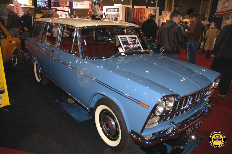 Es gab auch viele andere herausragende automobile Stücke zu bewundern – im Eingangsbereiche größte die Besucher gleich ein hervorragend im Originalzustand erhaltener Paige Saloon, wenig weiter stand ein völlig authentischer Studebaker Avanti von 1963. Eine Reihe von ausgestellten Autos waren vom Veranstalter als herausragende Präsentationen prämiert worden. Ein regelrecht perfekter Fiat 2300 Familiare stach hier besonders ins Auge. Auch sonst waren neben den beliebten Klassikern wie Porsche 911 & 356, Volkswagen Käfer, den klassischen kleinen Fiats und den immer wieder gut gefallenden Jaguar auch viele ausgefallene und ungewähnliche Stücke zu sehen, was immer den Reiz gerade dieser Ausstellung ausmachte. Nicht zuletzt trugen die ausstellenden Oldtimerclubs wesentlich zu dieser Vielfalt bei, beispielsweise mit einem 1961er Borgward P100, einem 1956er Nash Ambassador und einem 1935er BMW 319.