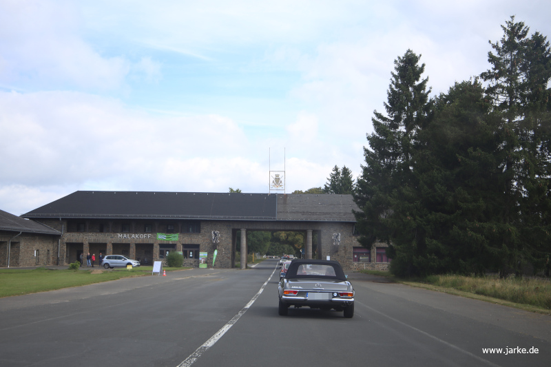 Burg Konradsheim war der Startpunkt der diesjährigen Ausfahrt. Die ersten Kilometer führten zur früheren Ordensburg Vogelsang. Die Führung über das große Gelände erklärte sowohl die frühere Funktion als Schulungsstätte für den Nachwuchs des NSDAP-Führungskaders als auch die spätere Nutzung durch die belgische Armee als Kaserne für den angrenzenden Truppenübungsplatz.