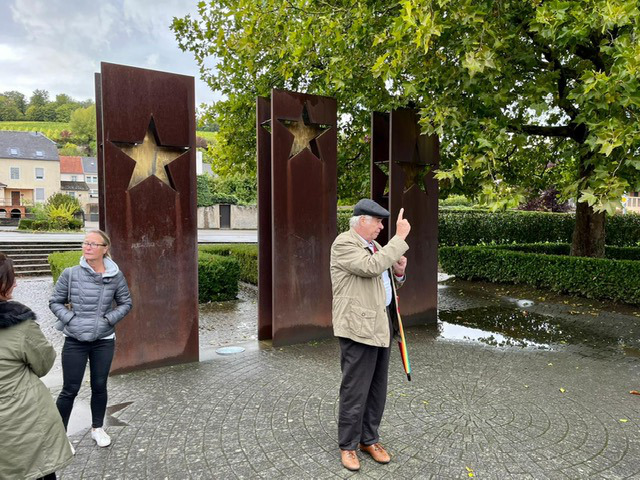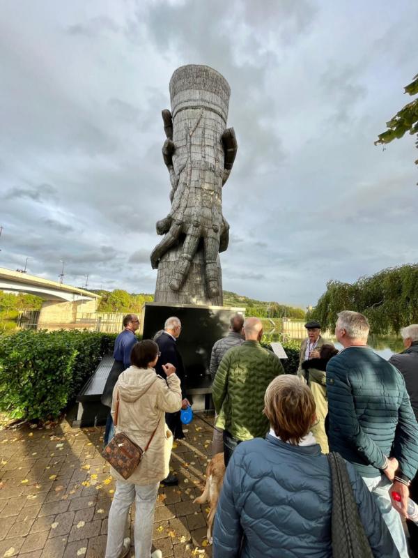 Frisch gestärkt fuhren wir eine Stunde später weiter - großenteils entlang der Mosel - nach Schengen, wo uns der Führer Felix in einer regenfreien Stunde einen mit Humor gewürzten, sehr interessanten Einblick in die Geschichte der Europäischen Gemeinschaft und des Schengener Abkommens gab. Nun hieß es noch 'billig tanken' (naja: 1,65 €), ehe uns der Weg zurück nach Deutschland führte ins Hotel zur Saarschleife. Ihr ahnt es: Es gab wieder etwas zu essen! Die Übernachtung in diesem guten Hotel war durchaus lobenswert, wenn auch Einigen 'aufstieß', dass wir um 23 Uhr mit den Last-Order-Getränken aus dem Restaurant in einen servicefreien Besprechungsraum im ersten Stock gebeten wurden.