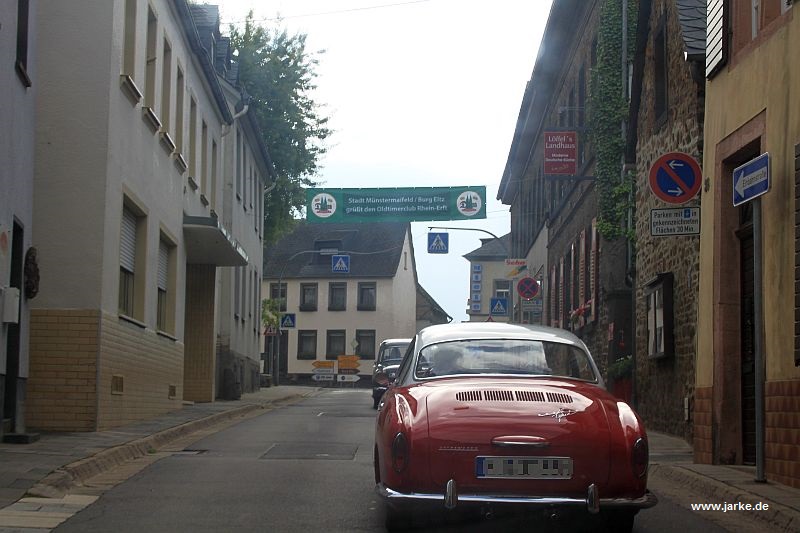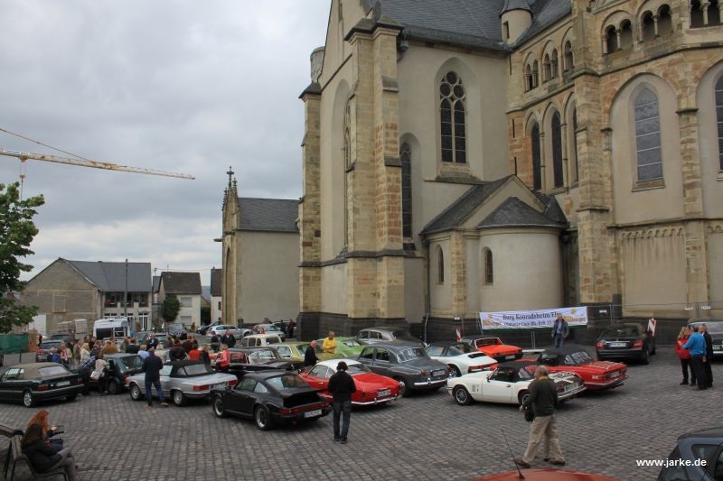 Pünktlich zum Sonntag endlich wieder Sonnenschein und frÜhherbstliche Temperaturen. 21 Fahrzeuge der Clubmitglieder und Gäste des Oldtimerclubs Rhein-Erft unternahmen am 15.09.2013 einen gemeinsamen Ausflug. Degenhard Neisse und Wilfried Kirschgen hatten dazu eine abwechslungsreiche Strecke und ein umfangreiches Besichtigungsprogramm ausgearbeitet. Von Burg Konradsheim in Erftstadt ging es auf verschlungenen Wegen zur Burg Eltz bei Münstermaifeld. Die FÜhrung durch Burg Eltz vermittelte interessante Einblicke in die mehr als 700-jährige Geschichte der Burg und ihrer Erbauer. Nach der Mittagspause wurde die Stiftskirche St. Martin und St. Severus in Münstermaifeld besichtigt. Hier ruhen die Reliquien des heiligen Severus von Ravenna. Der älteste Gebäudeteil stammt noch aus dem 12. Jahrhundert. Nach mehr als 120 weiteren malerischen Landstraßenkilometern wurde mit Burg Konradsheim wieder der Startpunkt des Ausflugs erreicht. Mit dem gemeinsamen Grillen endete der gelungene Ausflug in die Eifel.