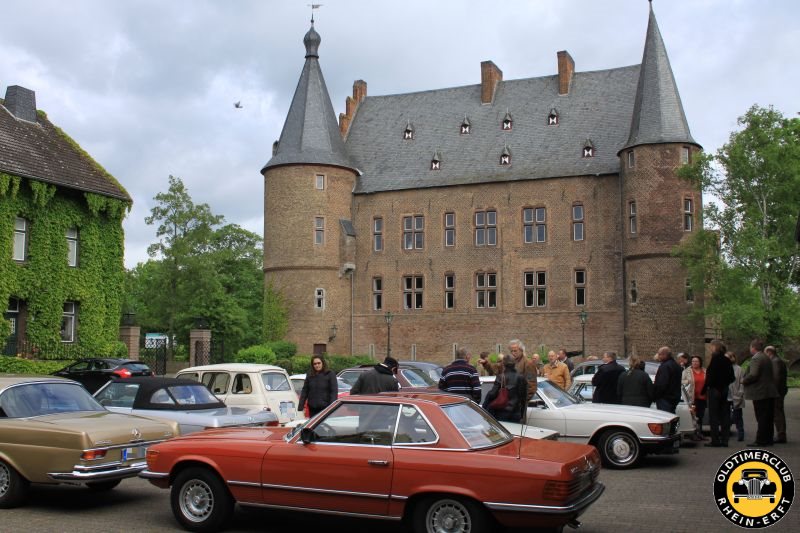 Die erste offizielle Clubausfahrt des Jahres führte am 11. Mai 2014 bei wechselhaftem Wetter quer durch den Erftkreis. Peter Kastner und Friedhelm Wahlefeld fanden 120 abwechslungsreiche Kilometer, die zu verschiedenen Sehenswürdigkeiten des Kreises führten. Unterwegs waren auch Fragen zu beantworten. Vom Startpunkt Burg Konradsheim führte die Strecke zum Besucheraussichtspunkt am Braunkohletagebau Hambach, wo noch bis zu 25 Jahre lang Braunkohle abgebaggert wird. Nach weiterer Fahrt wurde ein kurzer Stopp beim Gut Richardshoven eingelegt. Den nächsten Halt machten wir bei der Grottenhertener Mühle bei Bedburg. Hier wurde bei der Besichtigung anschaulich gezeigt, wie im 19. Jahrhundert Getreide verarbeitet wurde. Der nächste Halt war das Rosengart-Museum in Bedburg-Rath. Das kleine Museum zeigt in einem Gutshof aus dem 12. Jahrhundert ca. 30 Fahrzeuge der französischen Marke sowie das komplette Werksarchiv. Bei der Besichtigung der Abtei Brauweiler wurde uns von dem Landeskonservator Dr. Andreas Stürmer einerseits der geschichtliche Hintergrund erklärt. Die Ursprünge des Klosters liegen bereits im 11. Jahrhundert. Die romanische Stiftskirche überstand den zweiten Weltkrieg unzerstört und zeigt noch heute viele Details der Bauzeit, die z.B. den wiederaufgebauten Kölner Kirchen fehlen. Andererseits wurde das Bewusstsein für die Probleme der Kirchenrestaurationen geschärft. Beim gemeinsamen Abendessen auf Burg Konradsheim gab es allerdings noch eine Frage zu klären ... wer konnte alle Fragen unterwegs beantworten und hatte das nötige Glück bei den Schätzfragen.